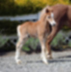 Chillie's first foal for us is a beautiful chestnut filly. She is so correct, with a beautiful head and kind eye. We are very pleased with his first foal, and hope to have more next year!!